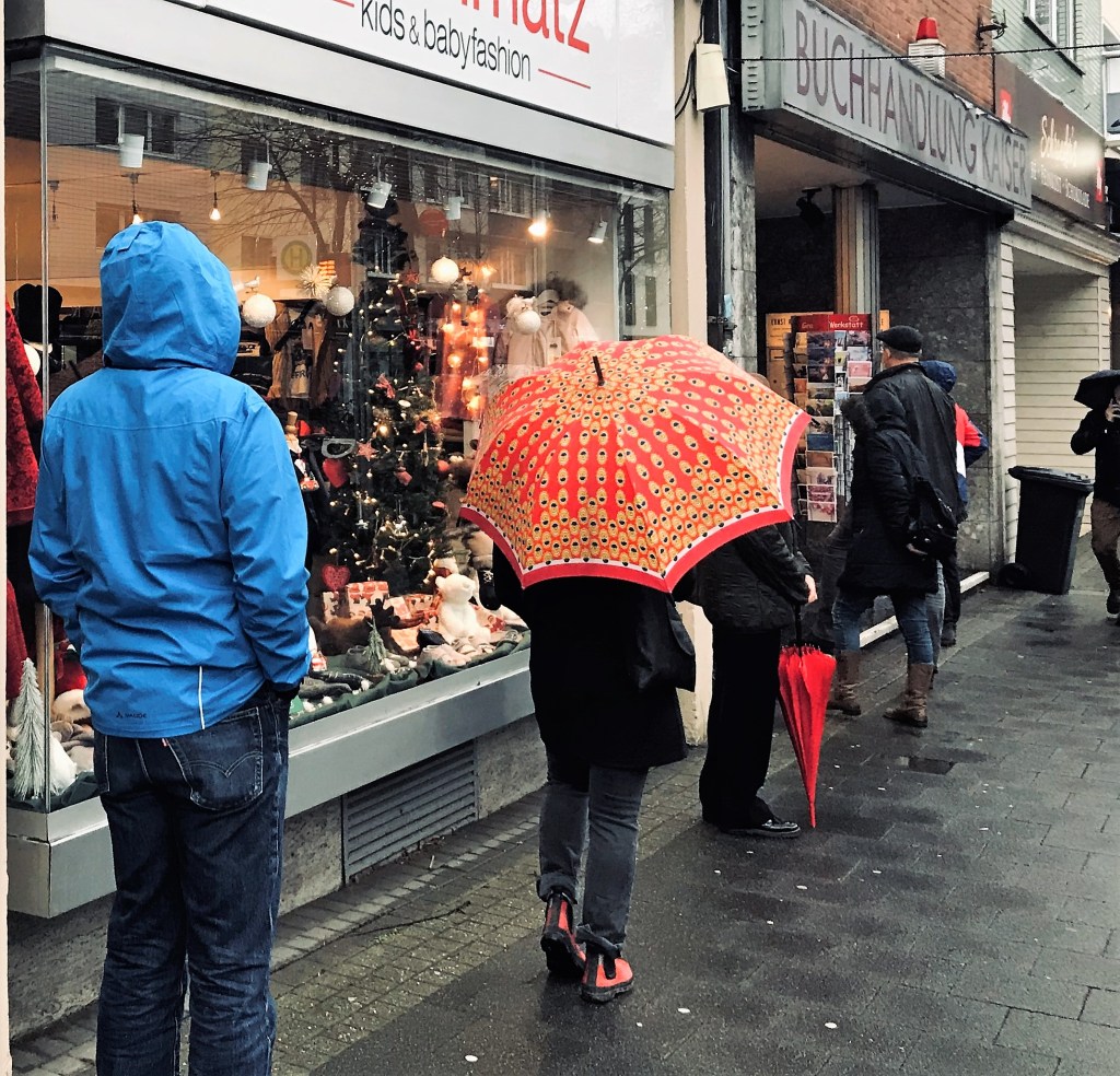 Schlange stehen im Regen – nicht für ein Autogramm von Lady Gaga und auch nicht für ein Supersonderangebot, sondern für ein Buch. Und das ist nicht das Ende der Schlange, sondern deren erste Hälfte. Gleich hinter mir kommt die Dame, die ihren Hund wegen des fehlenden Regencapes trösten muss, und noch drei weitere Maskierte mit fester Kaufabsicht. So wie hier auf der Dürener Straße in Köln sah es am Dienstag vor vielen Buchläden kurz vorm Lockdown aus. „Das ist doch nicht schön!“ sagt die Buchhändlerin, die sich im Dauereinsatz befindet. Das stimmt. Aber es zeigt auch: Bücher gehören zur Grundversorgung. Deshalb bleibt das Trostpflaster, dass zahlreiche Buchhandlungen weiterhin Bestellungen entgegennehmen. Selbst während des Lockdowns. Die Chance sollte man sich nicht entgehen lassen. (M.Oe.) Foto: Bücheratlas
