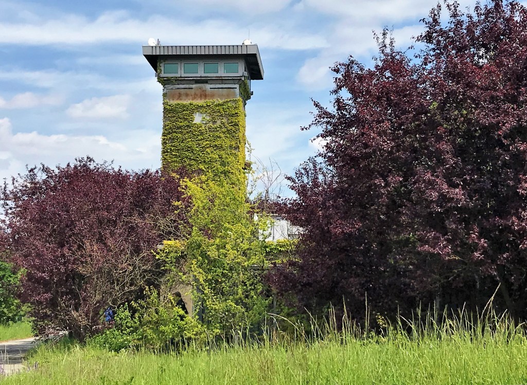 Auf der ehemaligen Raketenstation Hombroich in Neuss wohnte Thomas Kling in den letzten Jahren seines Lebens – in einem Flachbau, zu dem dieser Aussichtsturm gehört. Foto: Bücheratlas