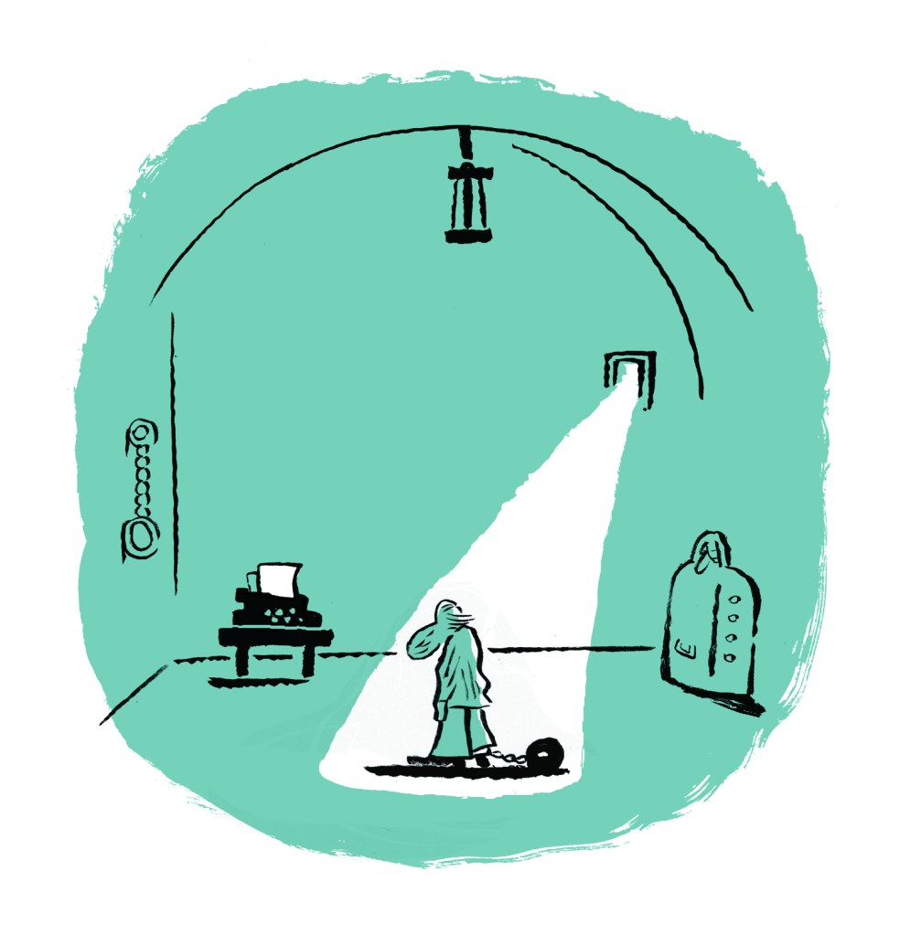 Der Wiener Illustrator, der schon einige Werke der Weltliteratur auf Comic-Größe kondensiert hat, widmet sich Thomas Bernhard (1931-1989) auf liebevolle Weise. Im viel zu hohen Ohrensessel ragt des Dichters ausdrucksstarke Nase kaum über die Armlehne hinaus. Meist ist er im Profil abgebildet. Womöglich hielte man den frontal fixierenden Blick nicht aus – nicht dieses Gemisch aus Witz-Wut-Wärme. Zuweilen bleibt einem das Lachen auch im Halse stecken. Knapper als Mahler kann man kaum den Zusammenhang zwischen schwierigem Aufwachsen des Kindes und schwierigem Verhalten des Erwachsenen andeuten. In Bernhards Worten: „Meine Krankheit ist die Distanz.“