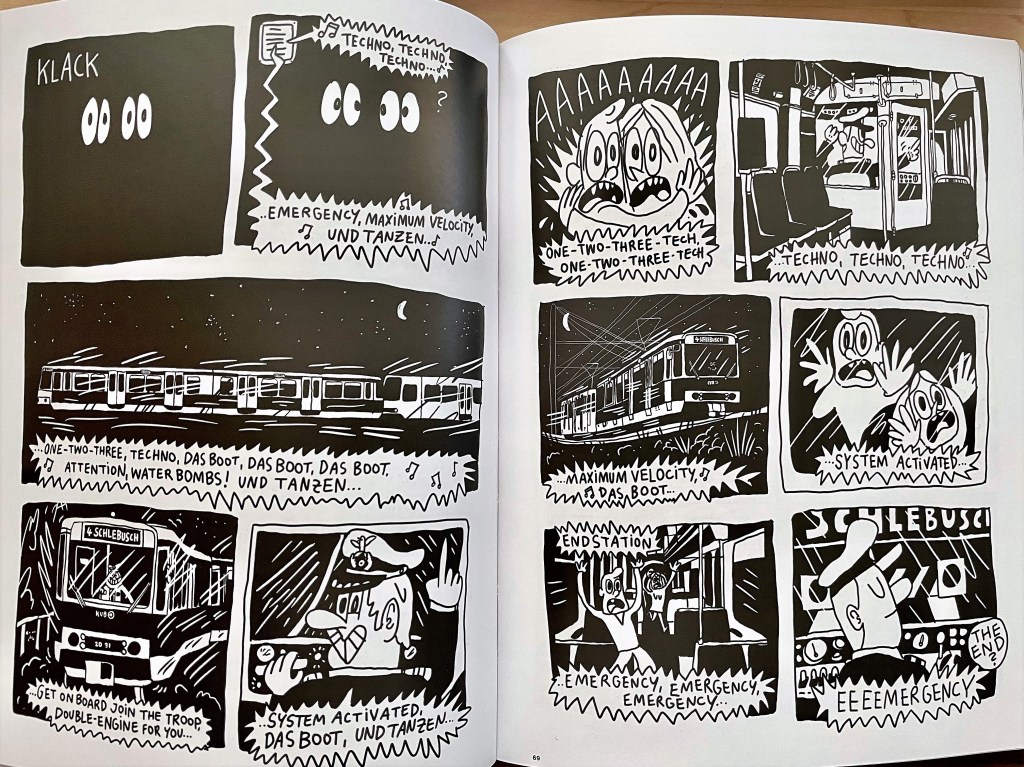 Hinzu kommen herrlich alptraumartige Exkursionen mit Peter Hoffmann in den Jugendpark in Mülheim und mit Alex Jahn auf nächtlicher Straßenbahnfahrt, bei der der Fahrer kurz vor der Endstation den Techno-Techno-Techno-Knopf drückt. Dem Pärchen, den einzig verbliebenen Fahrgästen, ist der Schrecken ins Gesicht gezeichnet. Ein klarer Fall von „Eeeemergency“. Schöne Späße gibt es auch. So beendet Heribert Schulmeyer das erste Kapitel seiner Autobiographie „Mein süßes Leben“ mit einigen Kleinanzeigen. Eine davon gilt zwei Büchern aus dem Verlag „e. mons“: „111 Orte wo Sie nie hinwollen“ und „111 Orte wo Sie nie hinkommen“. Ob Köln da oder dort oder gar nicht vorkommt, bleibt offen.