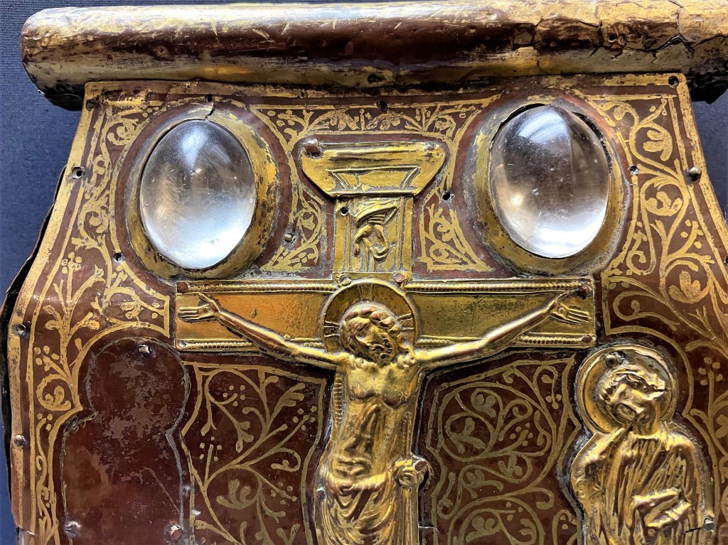 Die Verlockung des lichtdurchlässigen Gesteins, das die Griechen „krystallos“ nannten, basiert auf seiner Strahlkraft und Transparenz. Ein himmlisches Licht wurde ihm schon früh attestiert, so dass es liturgische Objekte aller Art schmückte, seien es Schreine, Kelche oder Buchdeckel. Vor allem aber war der Bergkristall ein ideales Behältnis für alle möglichen Reliquien. An denen herrschte im Mittelalter weiß Gott kein Mangel. So wurden auch die nach Europa gelangten Holzsplitter vom Kreuz Christi, wie Anton Legner schreibt, „oft in das durchsichtige Kleid des Bergkristalls gehüllt, zum sichtbaren Zeugnis und zur Verehrung des Zeichens der Erlösung.“