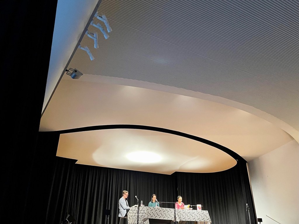 Das Publikum habe schon applaudiert, sagte die Schriftstellerin, bevor die Protagonisten auf der Bühne des Kölnischen Kunstvereins überhaupt etwas geleistet hätten. Tatsächlich gab es diesen Beifall für alle, die Bettina Fischer vom ausrichtenden Literaturhaus Köln vorstellte: Gleich zweimal für die aus England angereiste Monica Ali, dann für Moderator Julian Hanebeck, für Schauspielerin Azizè Flittner, die die deutschen Texte las, und überdies für Dorothee Merkel, die „Liebesheirat“ aus dem Englischen ins Deutsche übertragen hat und in der ersten Reihe saß. Ihnen allen waren die „positiven Vibes“ der Besucher gewiss.