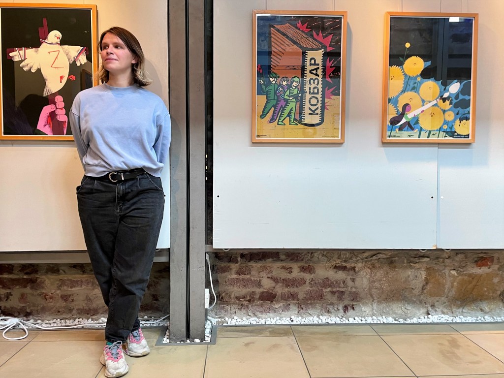 Ähnliche Ausstellungen werden vom Illustratoren-Club auch in anderen Ländern organisiert. Zum einen soll die Aufmerksamkeit für die Ukraine geweckt und um Spenden geworben werden. Zum anderen geht es aber auch um die Kunst in Zeiten des Krieges. „Wir sind keine Soldaten“, sagt Anna Sarvira bei der Pressekonferenz. „Aber wir können mit unseren Plakaten unseren Beitrag leisten“ – auch wenn es schwerfalle, sich an den Zeichentisch zu setzen, während in der Heimat die Raketen einschlagen oder die Nachrichten aus Butscha für Entsetzen sorgen.