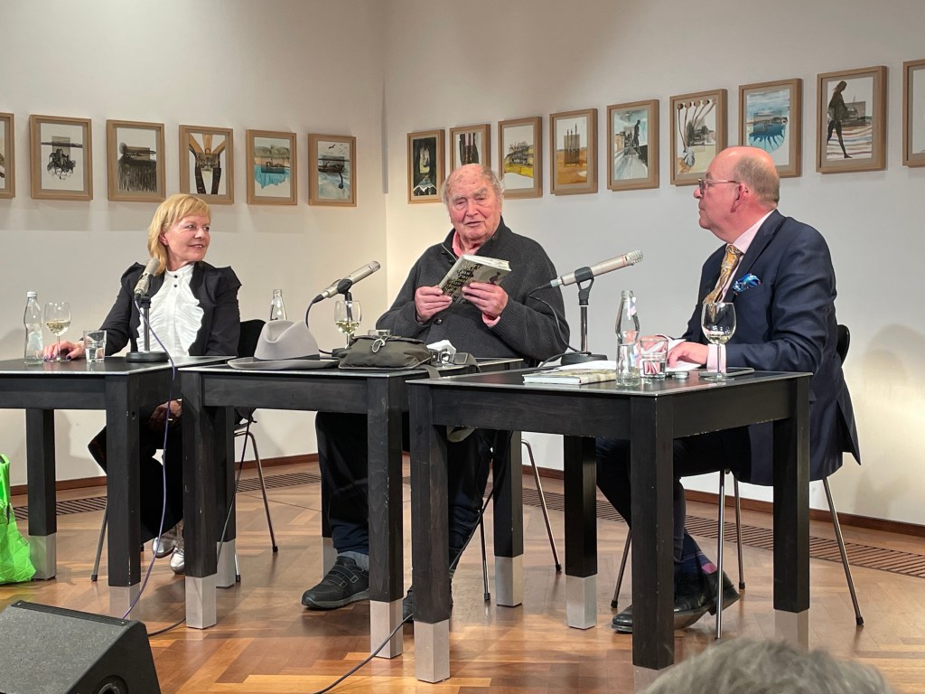 Und wie geht es so? Martin Walser, der mit dieser Eingangsfrage im Literaturhaus Stuttgart konfrontiert wird, hält sich nicht mit einer Floskel auf: „Für eine 95jährige Halbleiche“, so seine Worte, „ist das ein unglaublicher Bewegungsaufwand, der mir gar nicht mehr liegt.“ Da lacht das Publikum im vollbesetzten Saal – und ist nichts als froh, dass der Autor die Reisestrapaze vom Bodensee in die Schillerstadt auf sich genommen hat.