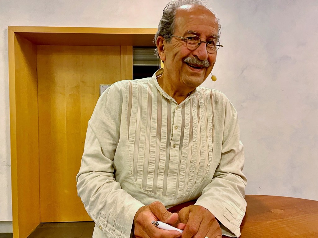 Da juchzt dann die eine oder andere Person im Publikum auch mal auf, wenn Rafik Schami als zweite Zugabe die Geschichte vom „Nudelsalat“ ankündigt. Denn die gibt er nicht zum ersten Mal zum Besten. Aber weil er sie mündlich vorträgt, also nicht vom Papier abliest, kommt sie immer etwas anders daher. Die Kernbotschaft bleibt gleichwohl dieselbe: Die Kulturen sind verschieden – und das ist gut so.