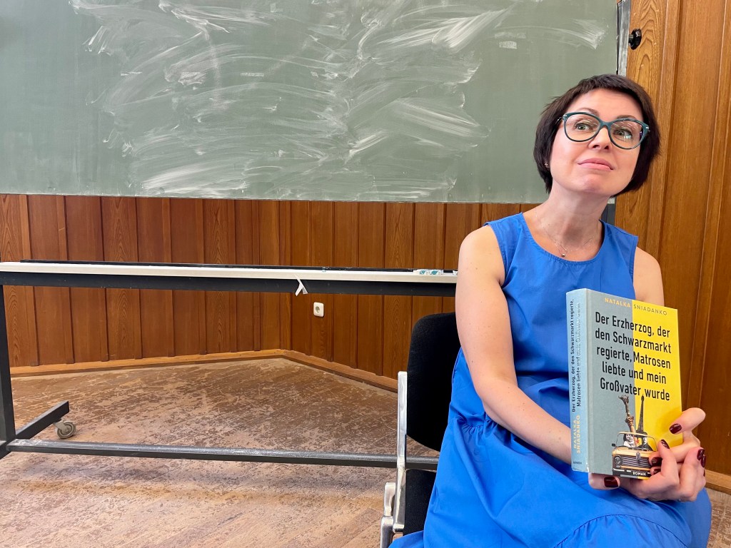 Die Schriftstellerin, 1973 im ukrainischen Lwiw (Lemberg) geboren, war jetzt auf Einladung des Instituts für deutsche Sprache und Literatur an der Kölner Universität zu Gast. Dort stellte sie gemeinsam mit den Studierenden Felix Jüstel und Elisa Schüler ihren Roman „Der Erzherzog, der den Schwarzmarkt regierte, Matrosen liebte und mein Großvater wurde“ vor. Er ist bereits 2017 in der Ukraine, aber erst im vergangenen Jahr auf Deutsch im österreichischen Haymon Verlag erschienen.