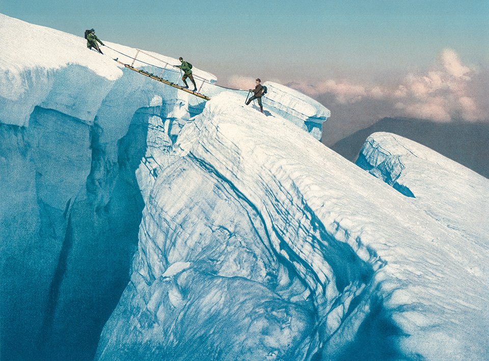 Was als erstes ins Auge springt, sind die Gletscher. Sie glitzern nicht nur im Sonnenlicht über den Alpen, sondern strecken ihre Zungen weit Richtung Täler hinaus. Um das Jahr 1900 wurden die „Eismeere“ noch nicht von der Erderwärmung heimgesucht wie dies in unseren Tagen der Fall ist. Kürzlich erst wurde festgestellt, dass die Gletscher in Österreich mittlerweile doppelt so schnell schmelzen wie im langjährigen Mittel – und beim größten Gletscher, der Pasterze am Großglockner, hat sich der Eisverlust gar vervierfacht.