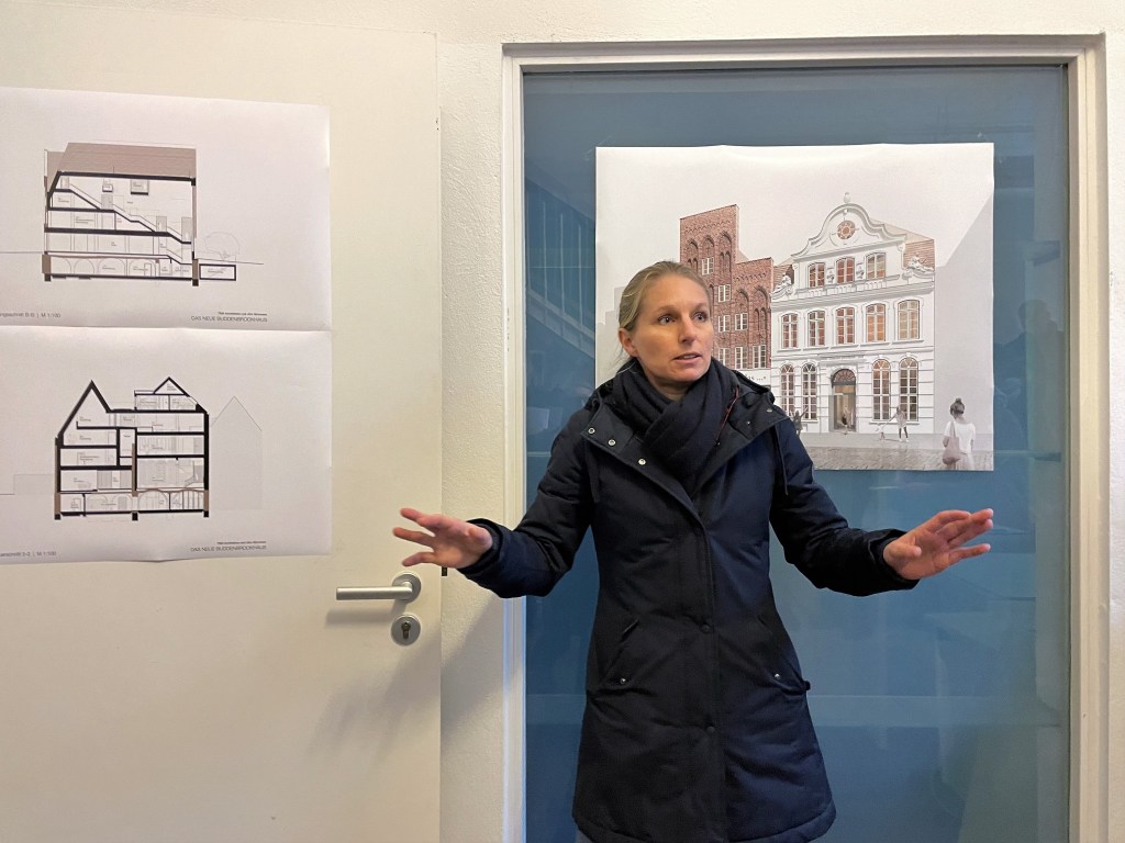 Um mehr Raum zu gewinnen, wurde 2013 das Nachbarhaus in der Mengstraße 6 angekauft. Dessen klassizistische Fassade muss für den Umbau „beiseitegestellt“ werden. Das ist kein geringer Aufwand und verweist auf ein Kuriosum am Rande: Die backsteingotische Fassade selbst ist schon einmal umgezogen. Nach der Kriegszerstörung wurde sie aus der 300 Meter entfernten Fischstraße in die Mengstraße versetzt, weil sie hier besser ins aufzubauende Lübeck zu passen schien.
