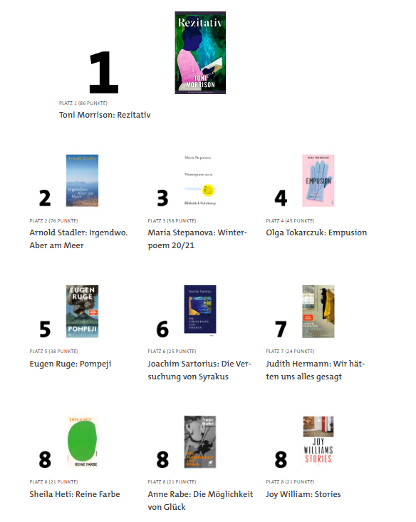 Die komplette Liste gibt es oben im Bild und außerdem unter SWR Bestenliste – SWR2 .