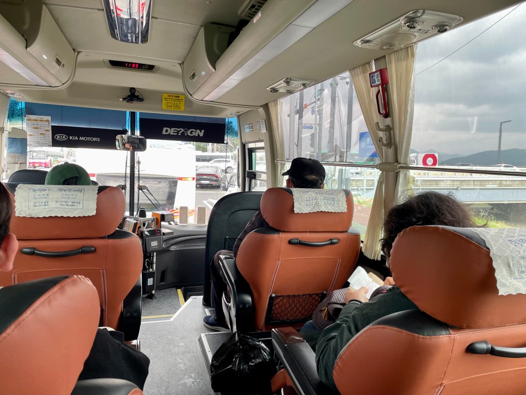 Busfahren in Korea ist ein Vergnügen. Preiswert und bequem in der Stadt wie durchs Land. Die Naver-App, die man sich vorab auf das Handy laden sollte, erleichtert die Orientierung in den öffentlichen Verkehrsmitteln. Sie sagt uns, wie wir von A nach B kommen. Während der Fahrt können wir unseren Weg als kleinen Leuchtpunkt auf dem Display verfolgen und wissen, wo wir aussteigen müssen.