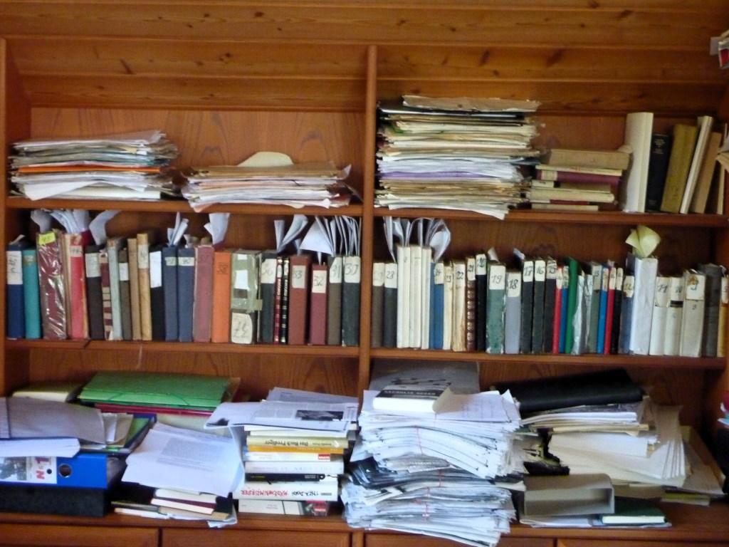 Saß der Autor am Schreibtisch, dann hatte er alles, was er elementar benötigte, in seinem Rücken. Im Regal standen griffbereit die durchnummerierten Blindbände, die ihm sein Verlag zur Verfügung stellte und in die er Ideen, Entwürfe, Träume, Beobachtungen notierte. „Darin findet das tägliche Schreiben statt“, sagte er, „das Schreiben, so wie es heute sein will, also nicht kontrolliert und beherrscht und arrangiert.“