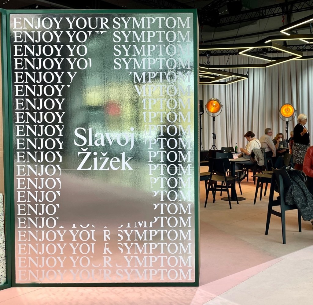 Auf der Messe wirkt Slavoj Zizeks Rede zur Eröffnung nach. Der Slowene ist in dieser Woche ein viel gefragter und häufig interviewter Mann. Das Gastland Slowenien würdigt ihn auf einer gläsernen Tafel in seinem Pavillon.