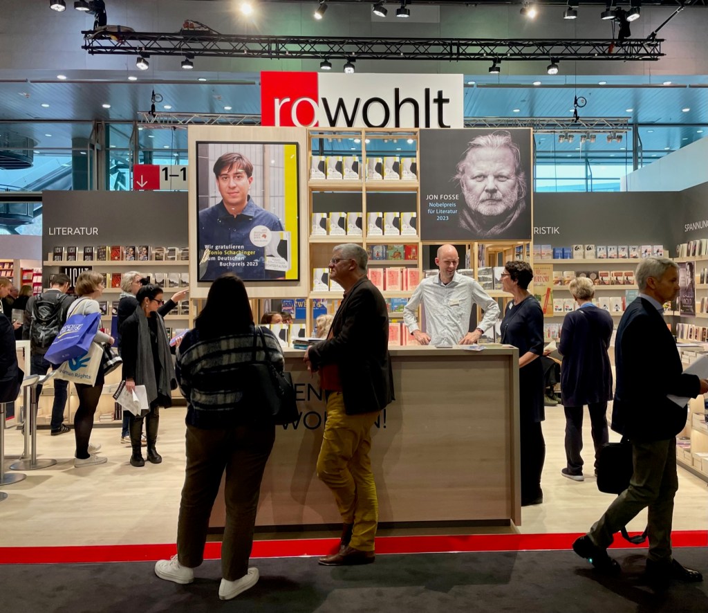Preise gibt es rund um die Frankfurter Buchmesse in Fülle. In dieser Kategorie ist der Rowohlt Verlag im bundesdeutschen Rahmen der Verlag der Stunde – mit Büchern des Literaturnobelpreisträgers Jon Fosse und des Deutschen Buchpreisträgers Tonio Schachinger. Außerdem hat man mit Daniel Kehlmanns „Lichtspiel“ ein Schwergewicht des Literatur-Herbstes im Programm (eine Besprechung gibt es HIER). Aber auch weitere Verlage jubeln. Der Penguin Verlag – und mit ihm alle, die die Freiheit des Wortes und die Faszination der Literatur schätzen – freut sich über den Friedenspreis des Deutschen Buchhandels, der am Sonntag an Salman Rushdie überreicht wird. Beim S. Fischer Verlag darf man auf eine weitere Auszeichnung für Charlotte Gneuß anstoßen. Sie hat auf der neuen Medienbühne im Forum der Messe den „aspekte“ Literaturpreis für „Gittersee“ erhalten.