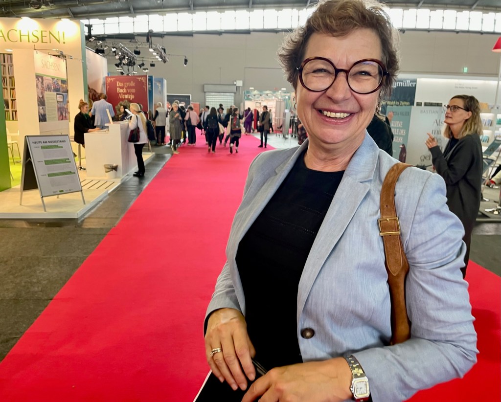 Gudrun Fähndrich begleitet Uwe Timm zu seinen öffentlichen Auftritten auf der Messe. Dabei geht es ausgesprochen entspannt zu. Wie es in diesem Falle auch nicht anders zu erwarten ist. Darauf wollen wir hier hinaus: Gudrun Fähndrich ist eine Institution im deutschen Literaturbetrieb. Seit 26 ½ Jahren arbeitet sie in der Presseabteilung des Verlags Kiepenheuer & Witsch – zuletzt als Pressechefin. Das macht sie so patent wie kompetent, so professionell wie zugewandt.