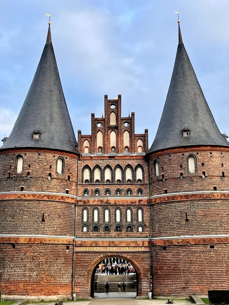 Das Holstentor in Lübeck mit dem immer wieder schönen Motto überm Eingang: Concordia domi foris pax – Eintracht drinnen und Frieden draußen. Foto: Bücheratlas