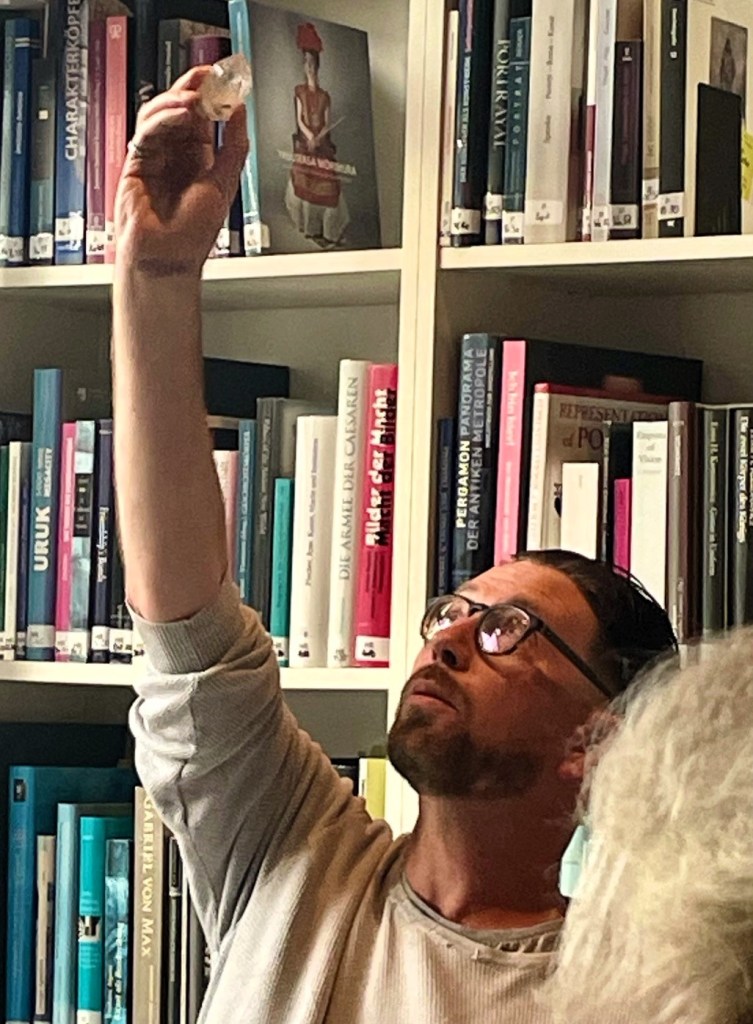 Allemal überraschende Objekte wurden aus den Taschen gefischt. Während der Nordmazedonier Nikola Madžirov über Tierporträts reflektierte, die auf den Münzen seiner Heimat zu finden sind, präsentierte der Schweizer Raphael Urweider einen Bergkristall, den er als „Strahler“ in den Alpen gefunden hatte – was eine so beliebte wie riskante Schatzsuche ist, wie er versicherte.