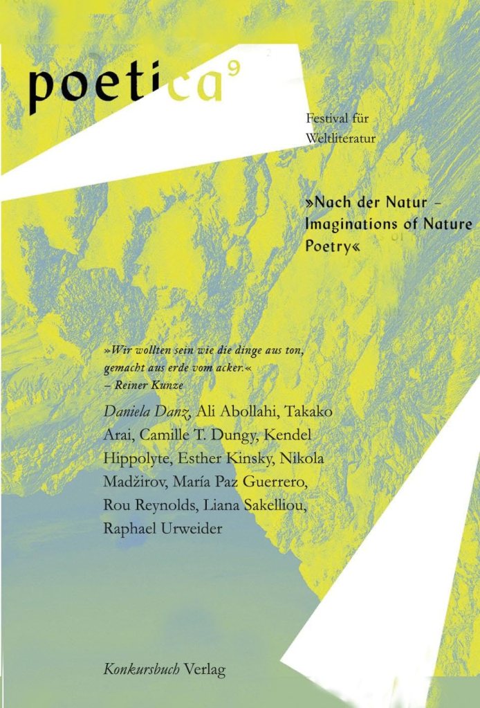 erscheint im Konkursbuch Verlag und bietet Porträts und Texte von allen Mitwirkenden: „Nach der Natur – Imaginations of Nature Poetry“, hrsg. von Daniela Danz, Günter Blamberger und Michaela Predeick, 180 Seiten, 14 Euro.