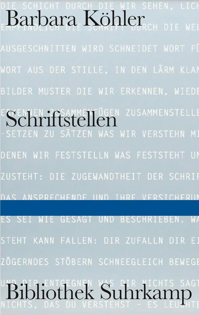 Barbara Köhler selbst hat in ihrer Bonner Poetikvorlesung von 2012 skizziert, was sie unter der Berufsangabe Schriftstellerin versteht: „Sie stellt Schrift, stellt sie her, stellt damit Hier her: eine Gegenwart.“ Dieses „Schriftstellen“ wolle keine Thesen bieten, sondern die Verhältnisse in Bewegung bringen. Auf dass die Lesenden bewegt werden. Es geht um die Frage: „Was steht da? Wörtlich, wirklich?“