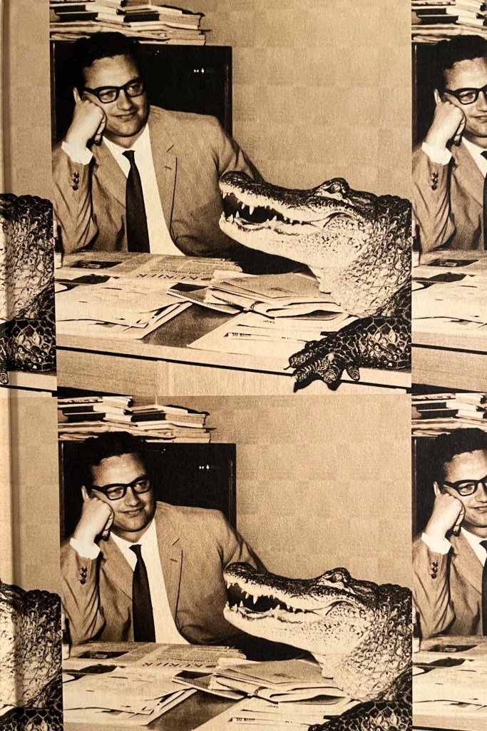 Das Buchcover hat es in sich. Aus zwei „Fenstern“ im blauen Umschlag lugt oben ein freundlich blickender Mann und unten ein Krokodil mit leicht geöffnetem Maul. Zieht man den Umschlag ab und schaut auf den Buchdeckel, entfaltet sich die Szenerie. Die Fotografie zeigt den Journalisten Harry Tallert, der sich seinen Schreibtisch kurzfristig mit einem Krokodil teilt, das ein Zirkusdirektor zu Werbezwecken in die Redaktion gebracht hat. Das ist einerseits amüsant. Andererseits steht es für ein Leben im Angesicht des Schreckens.
