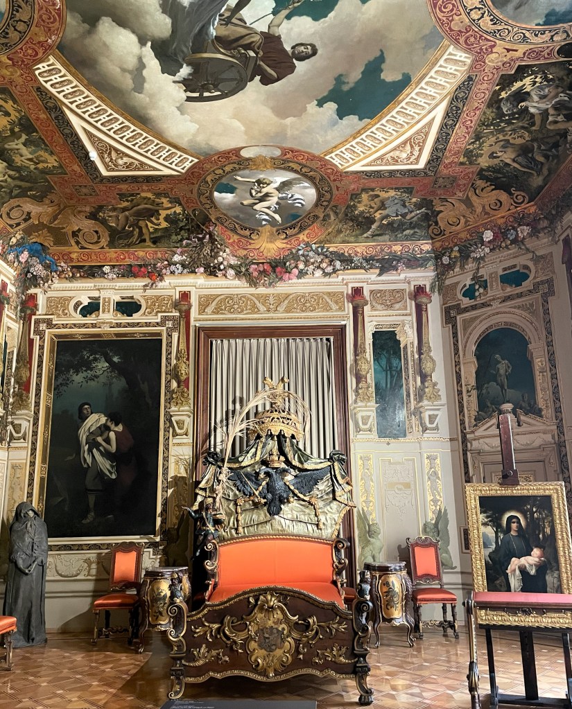 Nach Elisabeths Ermordung im Jahr 1898 erbte ihre Tochter Marie Valerie das Anwesen, verkaufte es jedoch 1911. In den folgenden Jahrzehnten verfiel das Schloss mehr und mehr. Erst 1970 begann man mit einer umfassenden Renovierung. Heute ist die neobarocke Hermes-Villa ein beliebtes Ausflugsziel, das wir gern empfehlen. Eingebettet in den parkähnlichen Lainzer Tiergarten, der mit Picknickplätzen, gepflegten Auen und zahlreichen Sitzbänken aufwartet, lädt es ein zu einem informativen Rundgang durch die obere Etage. Man kann unter anderem Sisis ehemaliges Turnzimmer, ihr Ankleide- und ihr Schlafzimmer mit dem riesigen barocken Prunkbett besichtigen. Ausgestattet ist der Raum mit üppigen Wandmalereien, die Szenen aus William Shakespeares „Sommernachtstraum“ zeigen, dem Lieblingsdrama der Kaiserin. Vom Originalmobiliar ist ansonsten wenig erhalten. Dennoch vermittelt das Interieur eine ungefähre Vorstellung vom kaiserlichen Leben in der Sommerfrische. Im Erdgeschoss ist ein Café untergebracht. Es verfügt über eine große Terrasse, auf der sich im Sommer wunderbar relaxen lässt.