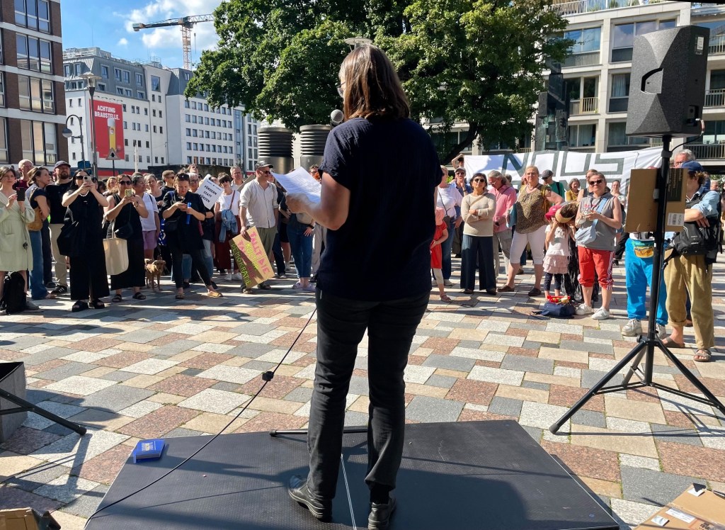 Zwar ging es den Rednerinnen und Rednern in erster Linie darum, dass der Anteil der Freien Szene am Kulturetat nicht schrumpft. Schon gar nicht derart drastisch wie gemunkelt wird. Doch war den meisten Anwesenden wohl bewusst, dass es das Ziel sein sollte, diesen Anteil zu erhöhen. Statt 5 Prozent, so sagte es Manuel Moser vom Kulturnetz Köln, sollten es 20 Prozent vom Kulturetat sein. Auch diesem Redebeitrag applaudierten die anwesende Kulturpolitikerin und die anwesenden Kulturpolitiker. Hingegen wurde der Kulturdezernent der Stadt Köln während der Ansprachen nicht gesichtet.