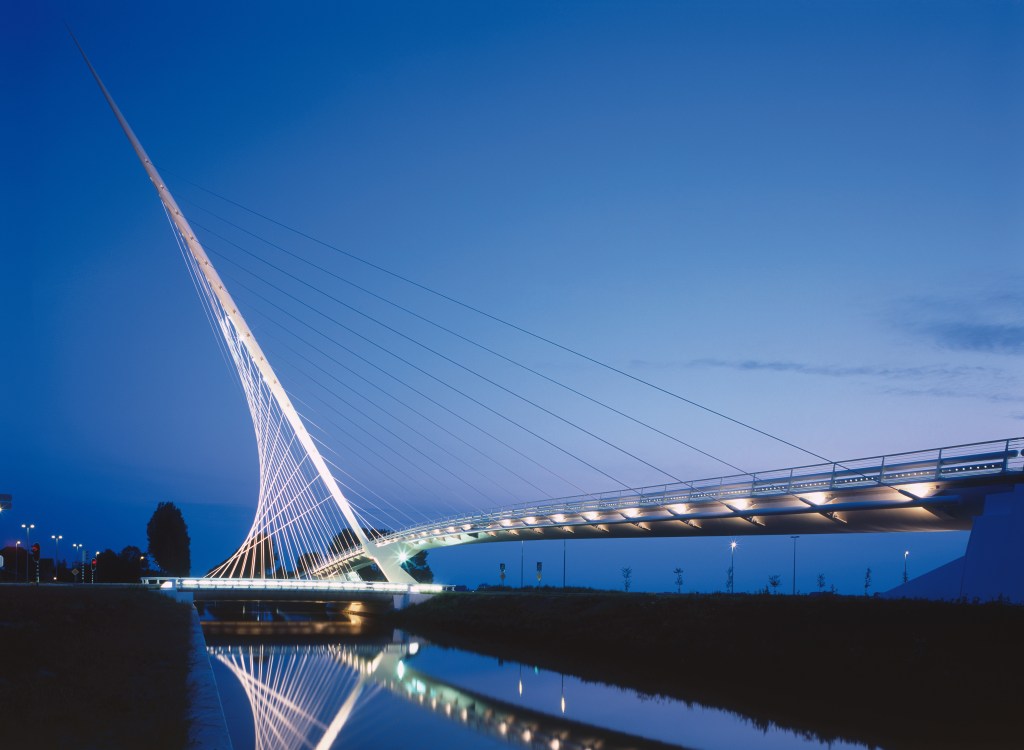 Blickt man auf die Funktionen der Gebäude, für sie sich Santiago Calatrava an den Zeichentisch gesetzt hat, dann erscheint als Architekt der Mobilität. Denn zumal Brücken und Bahnhöfe sind es, also Orte der schnellen Verbindung, denen er seinen Stempel aufgedrückt hat. Rund 70 Brücken hat er gestaltet, nicht wenige davon nur für Fußgänger wie jene, die in Venedig vom Busbahnhof beziehungsweise Parkhaus ins Zentrum führt. Und knapp 20 Bahnhöfe hat er entworfen, für Eisenbahn, Bus und Metro, darunter jene in Lissabon, Lüttich und Lyon. Hinzu kommen Pavillons, Museen, Flughäfen. Sie beeindrucken mit Schwung und Helligkeit, mit Anmut und Originalität.