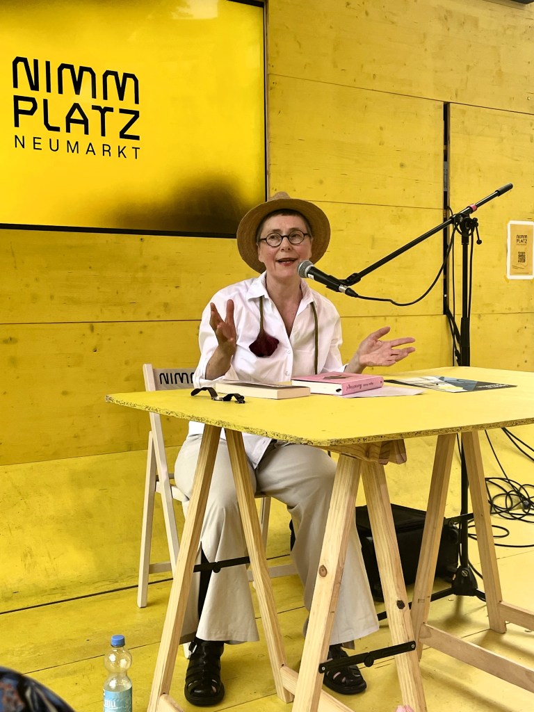 Der Gelbe Pavillon auf dem Kölner Neumarkt bietet noch bis zum 5. September ein Kulturprogramm. Ein Schwerpunkt der Initiative „Nimm Platz“ ist das tägliche Literaturangebot, das von der Literaturszene Köln kuratiert wird. Schon einige Male haben wir darüber berichtet (die Links gibt es am Ende des Beitrags). Nun folgen Anmerkungen zu Lesungen von Johanna Dombois und Angela Steidele.