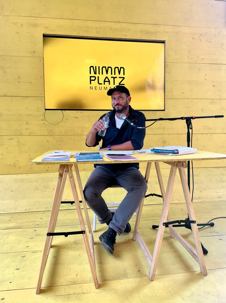 Ein Lyriker auf Reisen – hinaus in die Welt, hinein ins Ich. Dem Publikum sagt die Lesung fraglos zu. Allerdings gibt die kleine Tochter in der ersten Reihe den Takt vor. Und die möchte mit den Eltern weiterziehen. Das Manuskriptblatt, das ihr vom Lesepult gereicht wurde, ist längst vollgemalt. So merkt sie sich den Hinweis, dass noch drei Gedichte zu lesen seien. Kaum ist das erste abgeschlossen, lässt die Tochter wissen: „Noch zwei.“