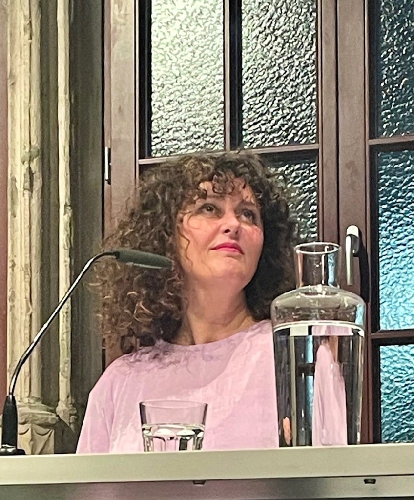 Doch lieber, so scheint es, spricht Meral Kureyshi über ihre Poetik. Ausgangspunkt ihrer Arbeit sei kein Plan, sondern ein Gefühl. Sie schreibe „laut“ und schreibe sehr viel. Anschließend verdichte sie das Material. Die jeweilige Geschichte reize sie mehr als es die Figuren tun. Die Fragmente, die ihre aktuelle Veröffentlichung vorstelle, seien nicht chronologisch geordnet: „Man kann das Buch auch von hinten lesen.“ Und das Wasser, das in allen ihren Texten auftauche, habe gar keine so große Bedeutung: „Es ist einfach da – die Leute springen rein und kommen wieder raus.“