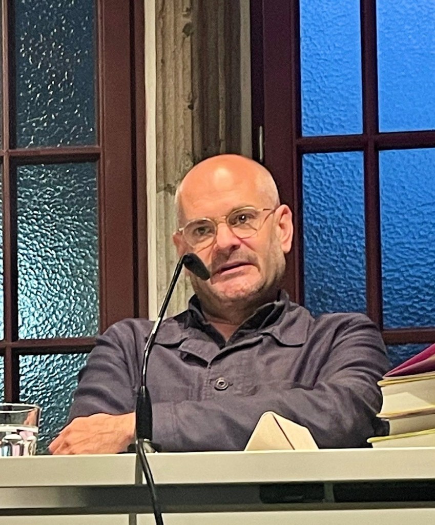 Jonas Lüschers Roman „Verzauberte Vorbestimmung“ widmet sich dem Verhältnis von Mensch und Maschine. Dabei erzählt er einschlägige Kapitel aus der Menschheitsgeschichte – vom Gaskrieg im Ersten Weltkrieg („dem Beginn des industrialisierten Tötens“) bis zur KI unserer Tage. Als er den Roman 2019 begonnen habe, sei er sehr technikkritisch eingestellt gewesen, sagte er. Das sei er immer noch. Allerdings hat er seine Position modifizieren müssen. Denn als eines der ersten Opfer der Pandemie lag er sieben Wochen im Koma – angeschlossen an eine Herz-Lungen-Maschine, die ihm das Leben gerettet hat. Da lernt man die Vorzüge des technischen Fortschritts zu schätzen.