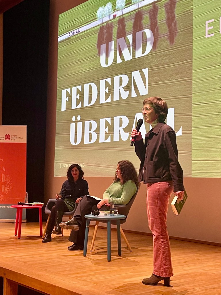 „Niemand wird am Ende der Veranstaltung rausgehen und denken, nun das ganze Buch zu kennen“, prognostizierte Moderatorin Anne Burgmer in ihrer Begrüßung. Tatsächlich wurde der Roman „Und Federn überall“ im Laufe der Veranstaltung von allen möglichen Ecken und Enden beleuchtet. Doch dass bei diesem Sechs-Personen-Drama noch sehr viel mehr zu entdecken ist, steht außer Frage. Dazu zählen Heimat und Identität, Optimierung und Automatisierung, Pubertät und polnische Vergangenheit: der Roman, der auf der Longlist zum Deutschen Buchpreis stand, ist ein weites und blühendes Feld.