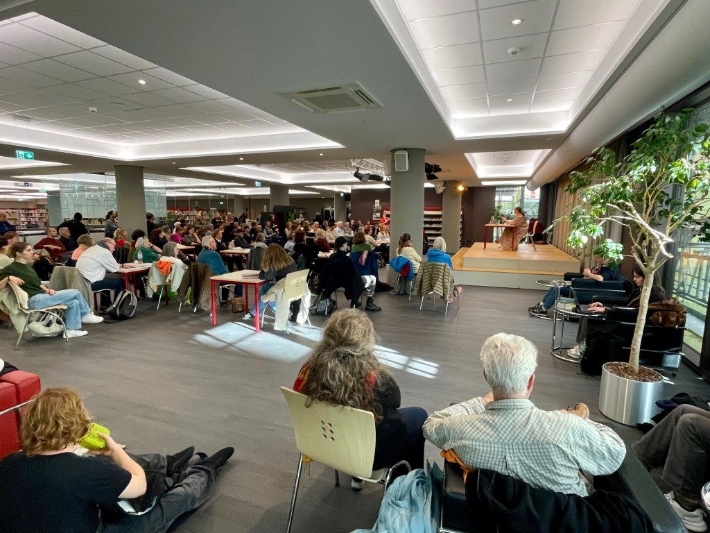 Kein Brot, nirgends. Einerseits war das nicht so toll, andererseits ein extrem gutes Zeichen. Denn zur Premiere der „Lunch Lectures“ in der Stadtbibliothek Köln war der Publikumsandrang viel größer als vermutet. Vorneweg war jedem Gast eine besondere Stulle („Erbsen/Basilikum“) zugesagt worden, die den Lesungs-Genuss begleiten sollte. Aber wer rechnet schon damit, dass sich so viele Literaturfreunde und -freundinnen auf dieses neue Angebot einlassen würden.