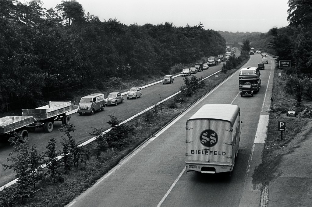 Dass dieses Foto-Material nun in einem sorgfältig gestalteten Bildband zugänglich gemacht wird, ist nichts als zu begrüßen. Es ist zum einen ein ästhetisches Vergnügen, sich auf die Inszenierungen einer vorwärtsblickenden Gesellschaft einzulassen. Zum anderen erlauben die Bilder Einblicke in verschwundene Lebenswelten – von der Wäscheleine im Vorgarten über die jeweilige Mode bis hin zu einigen im Mahlstrom der Zeit untergegangenen Berufen. Auch fallen erhellende Schlaglichter auf die Infrastruktur, darunter auf die sich allmählich belebende Autobahn. Kurzum – dieser Band ist ein schönes Schaustück und eine ergiebig sprudelnde Quelle.
