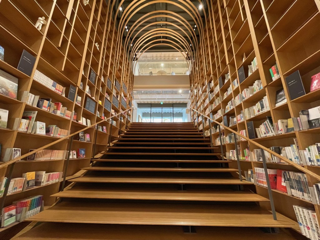 Zur Eröffnung der Bibliothek hatte Murakami eine Erfahrung zum Besten gegeben: Lernen sei „just like breathing“. Die Einschätzung gibt es eingerahmt an der Wand auf Japanisch und Englisch. Hier mal unsere Übersetzung: „Lernen unterscheidet sich nicht so sehr vom Atmen. Ob im Klassenzimmer oder nicht, man nimmt ständig die Welt um sich herum wahr. Ich hoffe, dass diese Bibliothek ein Ort des Lernens wird, an dem man leicht atmen kann, ein Ort, der es ermöglicht, alle Arten von Mauern zu überwinden – seien es die innerhalb akademischer Institutionen oder die entlang nationaler Grenzen.“