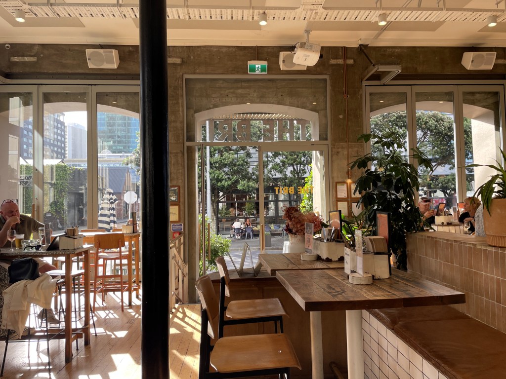 In Auckland speisten wir ganz wunderbar im Restaurant und Pub „The Brit“ an der Quay Street 122. Untergebracht ist es in einem ehemaligen Lagerhaus mit hohen Decken und großen Panoramafenstern. Von hier aus sind es nur ein paar Schritte bis zum Hafen. Bei gutem Wetter kann man draußen auf dem Gehsteig sitzen und hinübergucken zu den Kreuzfahrtschiffen, die dort vor Anker liegen.
