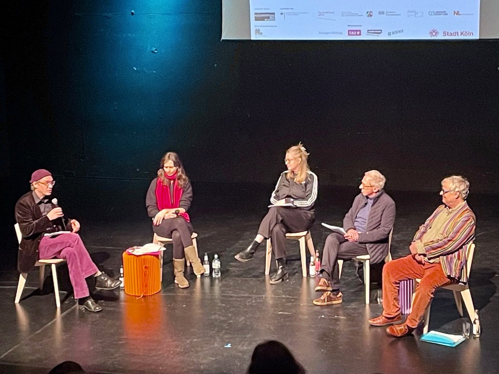 Schließlich versicherte Nadine Müseler, Literaturreferentin der Stadt Köln, dass sich die nicht-kommerzielle und mietfreie „Zwischennutzung“ am Ebertplatz bestens entwickelt habe. Seit acht Jahren schon sei das ein Ort, „wo man ganz viel machen kann“. Wesentlich für den Erfolg sei das Platzmanagement und eine Arbeitsgruppe, die beim „Eingrooven“ in das Konzept behilflich sei. Das Ganze in den Augen von Nadine Müseler: „Eine Perle.“