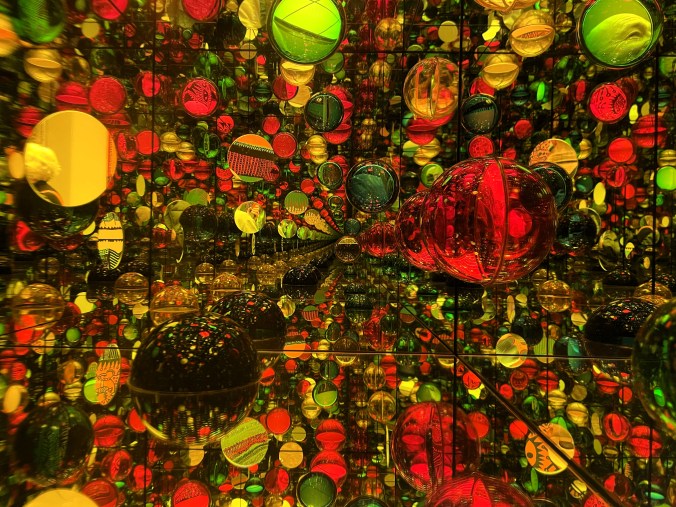 am Kopf der Seite zeigt eine Arbeit von Yayoi Kusama, die für das gesamte Werk zu stehen scheint: farbenfroh, pünktchenreich, verspiegelt und schier unendlich.